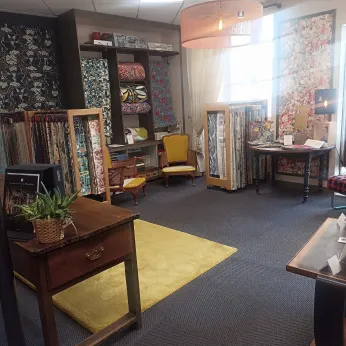 Fournitures: cire, gomme laque, finitions, peintures Annie Sloan, matériel de tapisserie, tissu d'éditeur